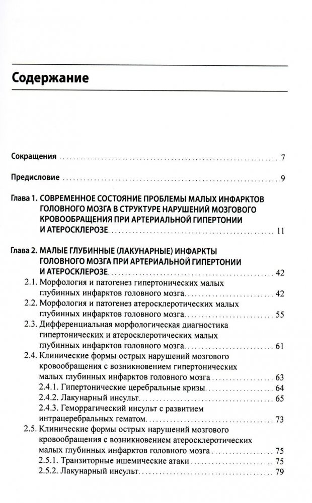 Книга посвящена актуальной медико-социальной проблеме современности - малым инфарктам головного мозга, основной причиной которых являются артериальная гипертония и атеросклероз. Книга содержит современные данные о состоянии этой проблемы и методах ее изучения. Представлены основанные на личном опыте авторов сведения о морфологических изменениях сосудистой системы и ткани головного мозга и их патогенезе при малых инфарктах головного мозга. Подробно описана клиническая картина малых инфарктов головного мозга, при этом особое значение уделено их симптоматологии и синдромному анализу, а также комплексу современных методов их диагностики. На основании собственного и мирового опыта изложены принципы лечения малых инфарктов головного мозга. Обсуждаются аспекты современной стратегии первичной и вторичной профилактики малых инфарктов головного мозга, приводится характеристика и оценка основных факторов риска; намечены перспективы дальнейших исследований по проблеме малых инфарктов головного мозга.