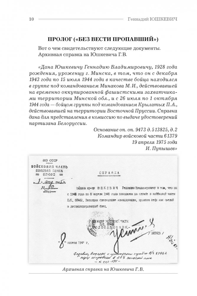 Книга, автором которой является ветеран Великой Отечественной войны Г. В. Юшкевич, имеет важное значение в деле патриотического воспитания молодежи. Повесть посвящена действиям военной разведки Красной Армии в годы Второй мировой войны в глубоком тылу форпоста нацистской Германии — Восточной Пруссии. Юный разведчик Гена Юшкевич, которому на то время было всего 15 лет, является непосредственным участником этих героических событий.