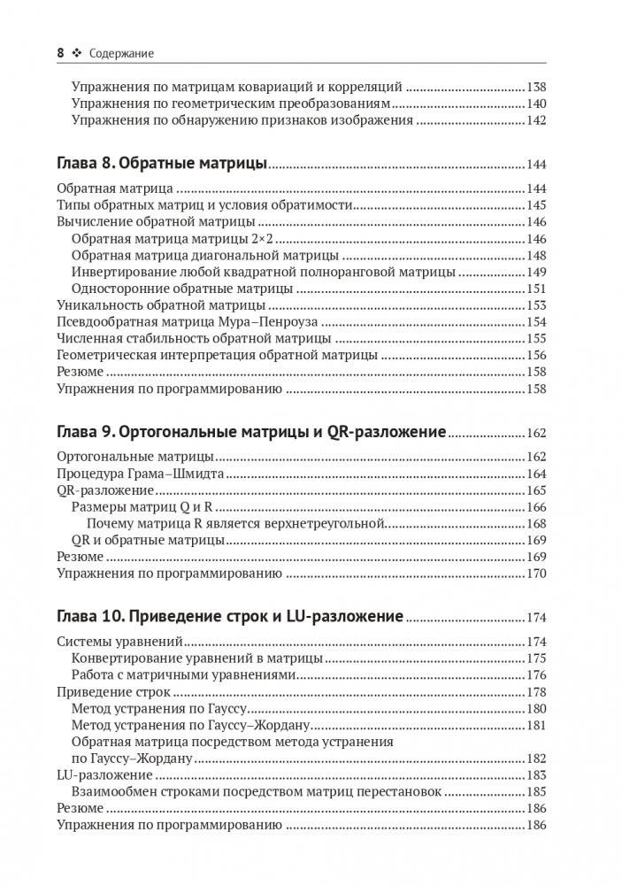 Линейная алгебра, предметом которой являются матрицы и операции на них, составляет математическую основу почти всех алгоритмов и методов анализа, реализованных в компьютерах. Но в учебниках десятилетней давности она преподносится без учета того, как профессионалы применяют линейную алгебру сегодня для решения реальных задач.