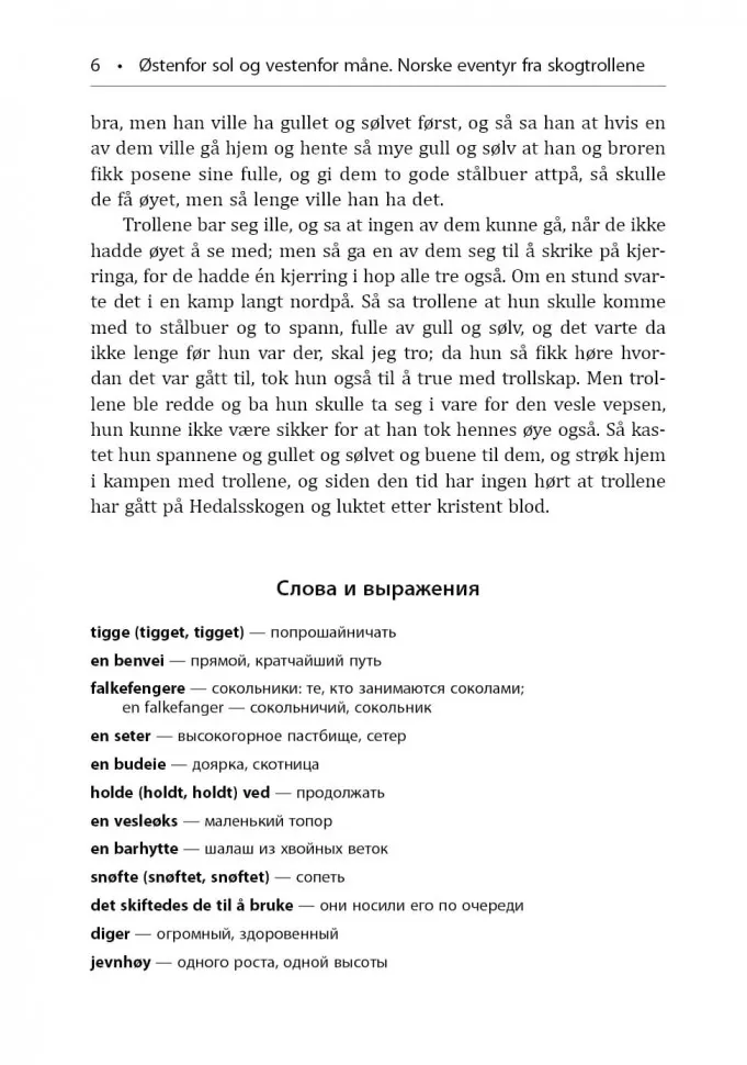 В книге тексты сказок на норвежском языке дополняют их художественные переводы на русский язык. Вопросы к текстам, а также слова и выражения к ним помогут читателю яснее понять содержание сказки, закрепить в памяти распространенные грамматические формы и пополнить словарный запас.