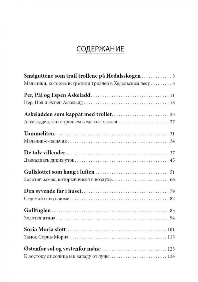Среди сказок есть и хорошо знакомые русскому читателю: "К востоку от солнца и к западу от луны", "Замок Сориа-Мориа", "Мальчики, которые встретили троллей в Хедальском лесу" - и неизвестные, ранее не переводившиеся, например "Седьмой отец в доме".