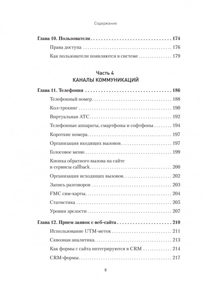 Книга поделена на части, в каждой из которых разбираются вопросы, важные для поэтапной проработки процесса внедрения CRM. Материал сопровождается вопросами для самопроверки, домашними заданиями, благодаря которым можно самостоятельно сделать значительную часть работы по подготовке требований к внедрению. Следование рекомендациям существенно повысит вероятность успеха вашего проекта, сократит количество ошибок, даст ключ к тому, какие вопросы нужно задать интегратору или самостоятельно запустить CRM в своей компании.