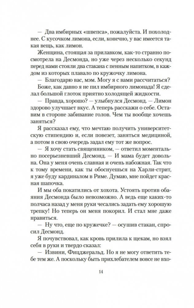 Десмонд Фицджеральд умен, невероятно привлекателен, к тому же обладает божественным голосом. Его ждет блестящее будущее. Окончив семинарию, он становится священником, побеждает в Риме на музыкальном конкурсе и отправляется по назначению в приход в Ирландию, где быстро располагает к себе главу местной церкви и прихожан. Но вдруг налаженная жизнь рушится с головокружительной быстротой. И как всегда, виновата женщина... Это роман о потерянных возможностях и мечтах, о праве на ошибку и о том, что всегда есть шанс начать все сначала. Семь лет назад Грейси Линдсей, попав в беду, покинула город, чтобы родить ребенка, потом вышла замуж и уехала в Индию. И вот теперь после смерти мужа Грейси возвращается в родные места, чтобы начать все сначала. Но общество маленького городка не оставляет ее в покое, и прошлое молодой женщины начинает преследовать ее…