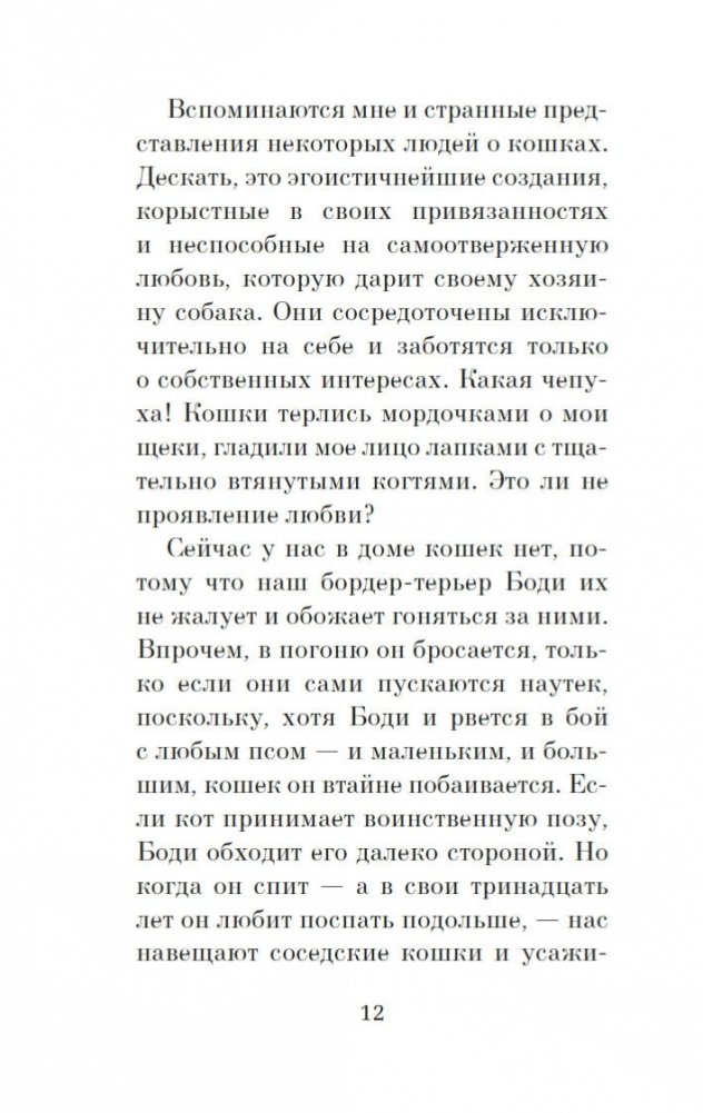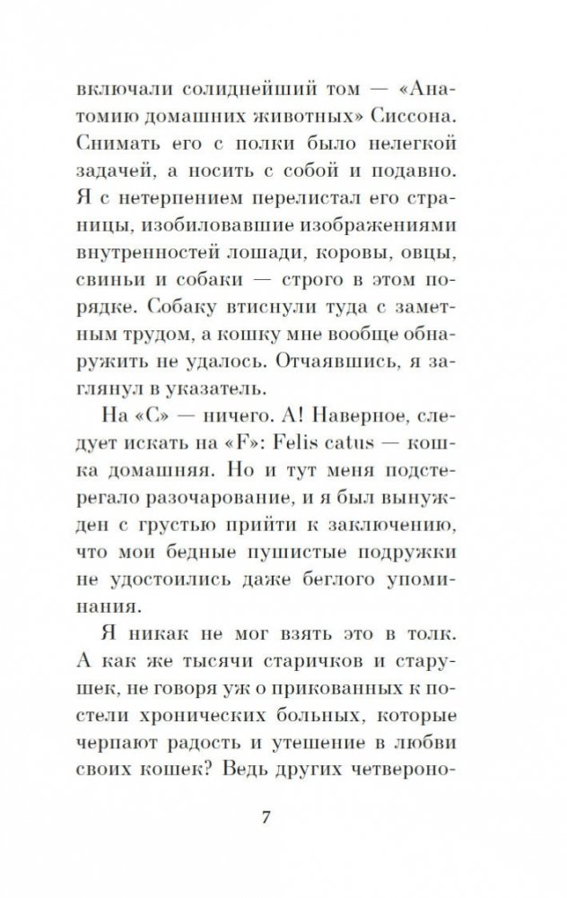 Имя английского писателя и ветеринара Джеймса Хэрриота, автора книги «О всех созданиях — больших и малых», известно сегодня во всем мире. Сборники его смешных и трогательных рассказов о животных переведены на десятки языков. Добродушный юмор и блестящий дар рассказчика Джеймса Хэрриота покоряют все новых читателей, не переставая удивлять, насколько истории из практики сельского лекаря могут быть увлекательными и интересными. Этот сборник посвящен исключительно кошкам, занимавшим особое место в жизни писателя. Более того, даже профессию ветеринара Хэрриот выбрал отчасти из-за своих пушистых подружек. По признанию автора, он любил их всегда, с благодарностью принимая ту глубокую привязанность, которой кошки отвечают на ласку, и восхищаясь их врожденной грациозностью, неподражаемым изяществом и неуемной шаловливостью — постоянным источником радости для хозяев.