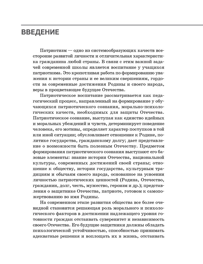 В пособии отражены теоретические и практические аспекты организации работы по военно-патриотическому воспитанию учащихся. Рассматриваются основные направления, формы и методы военно-патриотического воспитания, а также особенности реализации военно-идеологического, военно-исторического и военно-спортивного направлений на I, II и III ступенях общего среднего образования. Предлагается алгоритм составления календарного плана работы по военно-патриотическому воспитанию в учреждениях общего среднего образования.