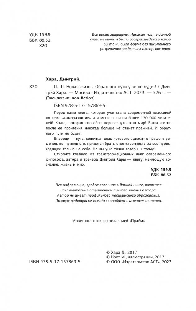 «Хочу предупредить, что „П. Ш.“ — книга, меняющая твой мир. Твоя жизнь после ее прочтения больше не будет прежней. Подумай, стоит ли переворачивать страницу, которая перевернет твой мир? Может, лучше все оставить как есть? Просто обратного пути не будет. Впереди — путь, конечная цель которого зависит от твоего решения, но, приняв его, придется брать ответственность за все происходящее только на себя. Готов ли ты к этому?»
