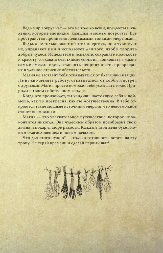 Под руководством старшей ведьмы ты узнаешь о магических практиках, энергии стихий и свойствах растений, камней и талисманов. Волшебство проникнет во все сферы твоей жизни. С ним ты станешь сильной, свободной и счастливой.
