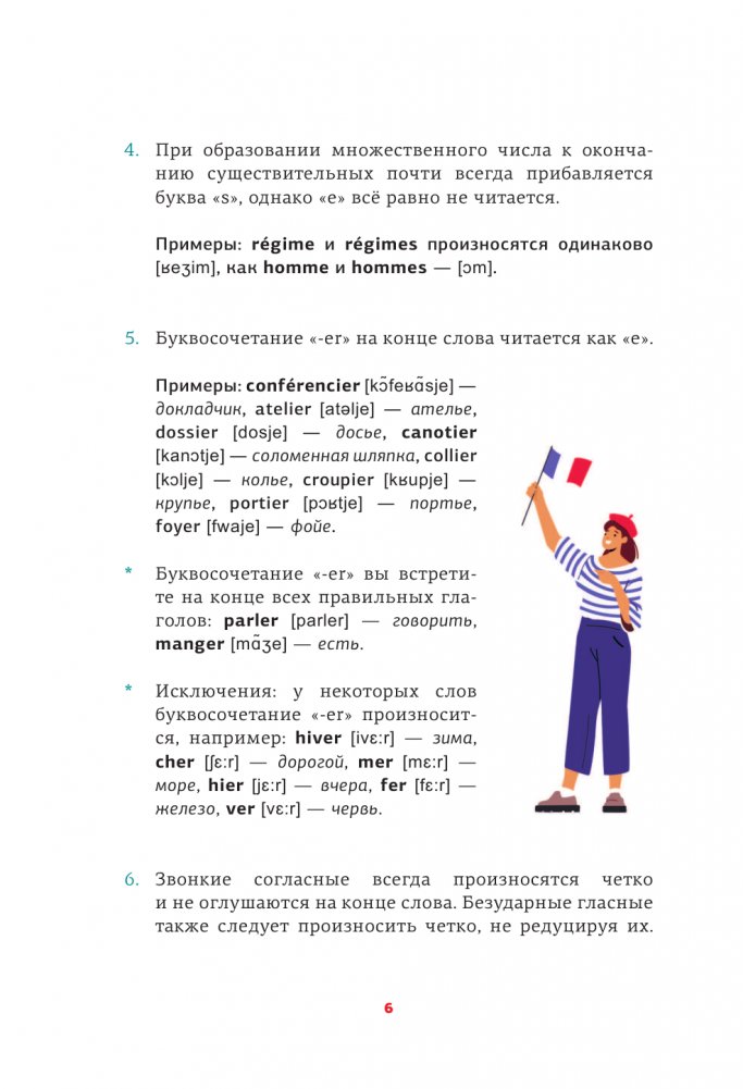 Хотите с лёгкостью прочитать, например, такие слова, как château, portefeuille, déjeuner, glaçon, règle? Начните обучение с этой книгой. Здесь представлены французские буквы, буквосочетания и звуки с подробным объяснением их произнесения, а также упражнения для тренировки. Вы сможете отлично читать и произносить слова, не задумываясь над правилами.