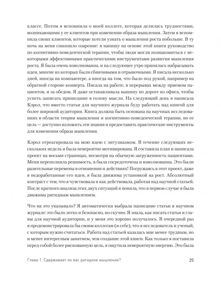 В своей более чем двадцатилетней практике Элейн Эллиотт-Москва наблюдала, что далеко не все люди, стремящиеся к саморазвитию, достигают успеха. Она обнаружила, что дело не только в намерении и мотивации человека, но и в том, какое у него мышление. Книга помогает читателям избавиться от самоограничивающих установок и убеждений ригидного мышления и заменить их мышлением роста, которое повысит устойчивость и уверенность в себе, сформирует основу для изменения жизни. В книге также представлено множество практик и упражнений из КПТ.