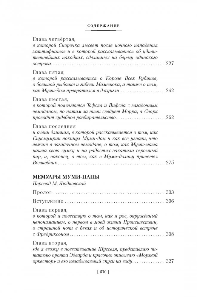 В маленькой долине на зелёном лугу стоит удивительный дом, выкрашенный голубой краской. В этом доме живёт семейство муми-троллей: Муми-мама, Муми-папа и сам Муми-тролль. И если в один прекрасный день на пороге объявится большая компания, здесь всем найдётся место. Вообще-то, вокруг много всего непонятного и опасного — стихийные бедствия, волшебные шляпы, муравьиные львы… Но муми-троллей, снорков, Сниффа, Снусмумрика и их друзей это вовсе не пугает. Они путешествуют, размышляют о нужности и ненужности всего сущего, пишут книги и ищут сокровища. Ведь какие бы приключения ни ожидали Муми-тролля и его друзей, они знают: даже если в их долину упадёт комета, даже если случится наводнение или начнётся буря, лес, сад и дом останутся на месте. На веранде всегда можно будет выпить чашечку кофе и полакомиться печеньем или тортом, который испекла Муми-мама… Папа с мамой всё уладят, только нужно вовремя вернуться домой!..