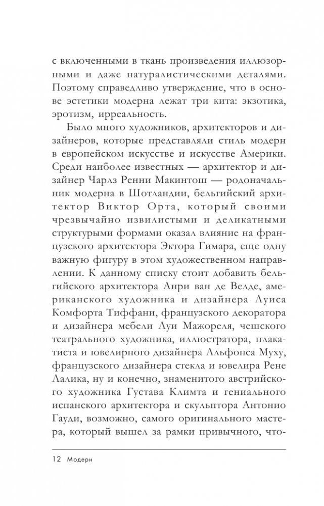 Было много художников, архитекторов и дизайнеров, которые представляли стиль модерн в европейском искусстве и искусстве Америки. Среди наиболее известных — чешский театральный художник и иллюстратор — Альфонс Муха, знаменитый австрийский художник — Густав Климт, и, пожалуй, самый оригинальный испанский архитектор — Антонио Гауди.