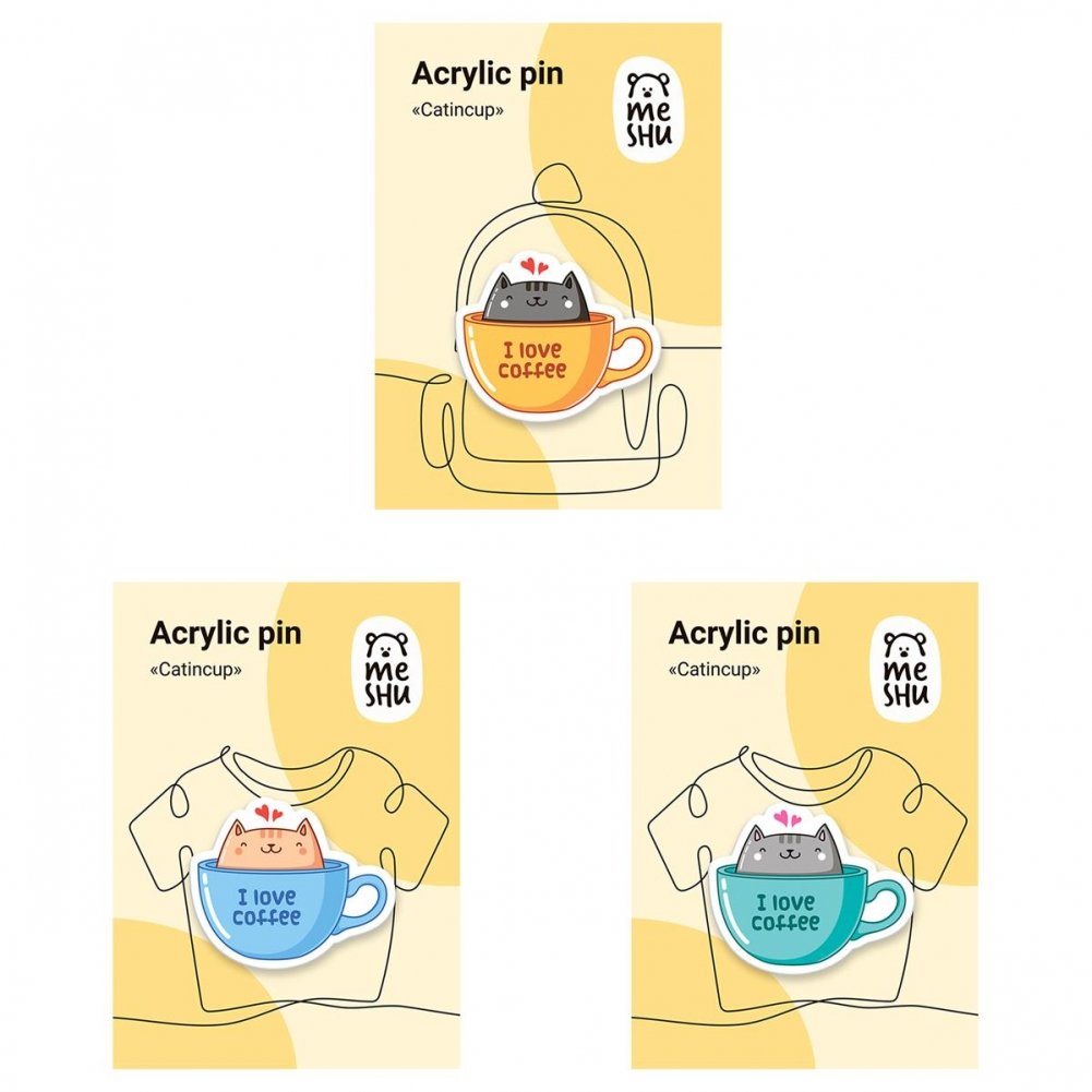 Набор акриловых значков MESHU "Catsincups", прямая УФ-печать, 3 шт. Арт. MS_54860