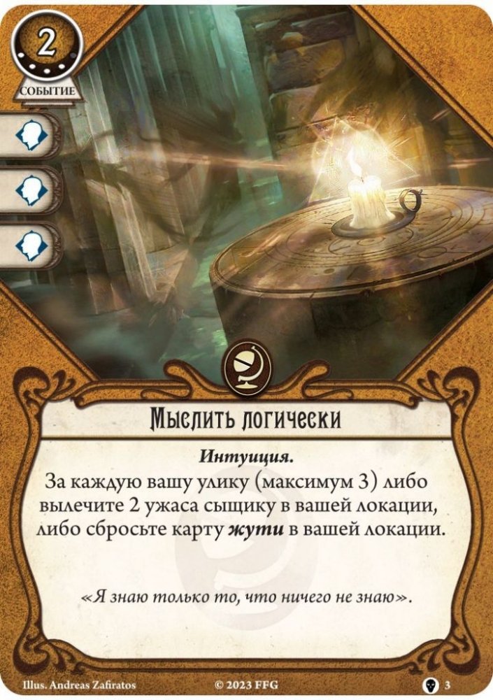 Затем наступает фаза Расследования, где игроки в любом удобном для себя порядке выполняют по 3 действия из доступных: