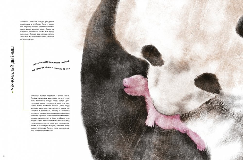 Также книга содержит много интересной информации об ареале обитания животных, их повадках, особенностях внешнего облика и о роли родителей в судьбах новорождённых и подрастающих малышей.