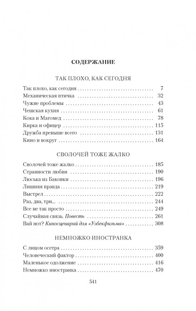 Виктория Токарева — известный писатель и сценарист; ее имя знакомо российским читателям и зрителям по любимым с детства фильмам: «Урок литературы», «Джентльмены удачи», «Мимино», «Шла собака по роялю», «Ты есть...». Особое место в творчестве автора занимают повести и рассказы. Теплые, живые, с мягким юмором, написанные неподражаемым, легким, «токаревским» языком, с симпатичными героями, которые порой напоминают нас самих: несутся по жизни, не успевая оглядеться, как на американских горках. Взлет — падение, любовь — расставание, радость — гнев. Но сквозь череду черных и белых пятен, калейдоскоп человеческих судеб и неразбериху чувств проступает главное: жизнь не тяжкое бремя, а божественный дар и за темнотой ночи придет рассвет. В издание вошли прозаические произведения Виктории Токаревой, включая рассказы «Так плохо, как сегодня», «Чужие проблемы», «Сволочей тоже жалко», «Странности любви», повесть «Случайная связь» и др.