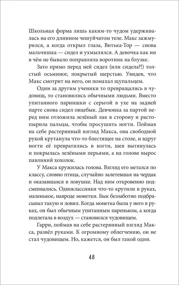 «Мы переезжаем в Ивановск», ни с того ни с сего заявляют Максу родители. И зачем им понадобилось в эту глушь?! Одно радует: в местной школе сильная футбольная команда. Играет Макс слабовато, но ему страшно хочется познакомиться с тренером: легендарным футболистом Львом Самсоновым. Вот бы взять у него автограф для коллекции! Правда, название у команды какое-то странное: «Монстры». Оно и неудивительно, ведь в новом классе Макса учатся одни чудовища! Как бы найти общий язык с одноклассниками и самому не потерять человеческий облик?