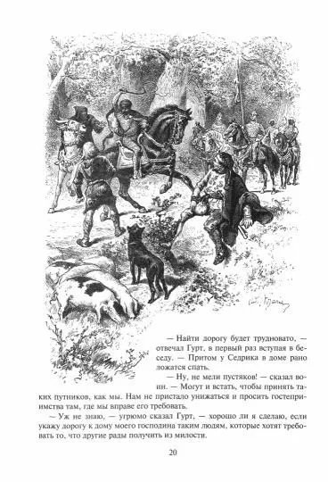 Герой романа, молодой рыцарь Уилфред Айвенго, копьем и мечом защищает свою честь и права, свою возлюбленную, леди Ровену, руки которой всеми средствами домогается жестокий и суровый крестоносец Бриан де Буагильбер. В судьбе юноши горячее участие принимают тайно возвратившийся в Англию король Ричард Львиное Сердце, которого коварные враги пытаются лишить трона, и легендарный разбойник, защитник угнетенных Робин Гуд.В настоящем издании полностью публикуется цикл из 156 иллюстраций, которые выполнили известные художники - Ф.-Т. Ликс, Ад. Мари, Эд. Риу и А. Скотт для парижского издания 1880 г.