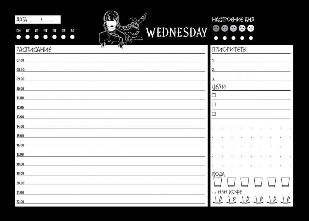 Планер настольный с отрывными листами. Уэнсдей (24х17 см, 48 л.)