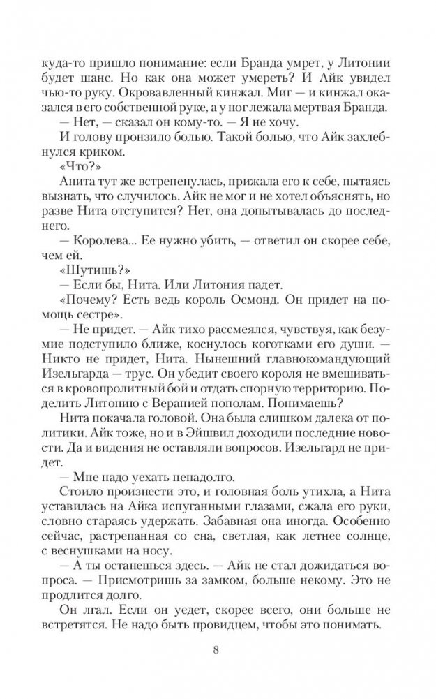 Провидец Айк Эйш видит свою страну в огне войны. И есть лишь один шанс остановить кровопролитие — убить королеву Бранду! Но судьба — дама переменчивая, а ко двору королевы уже спешит мужчина, который должен то ли погубить ее, то ли спасти. Вот только сама Бранда не желает быть спасенной и давно не верит в любовь, которая сильнее смерти.