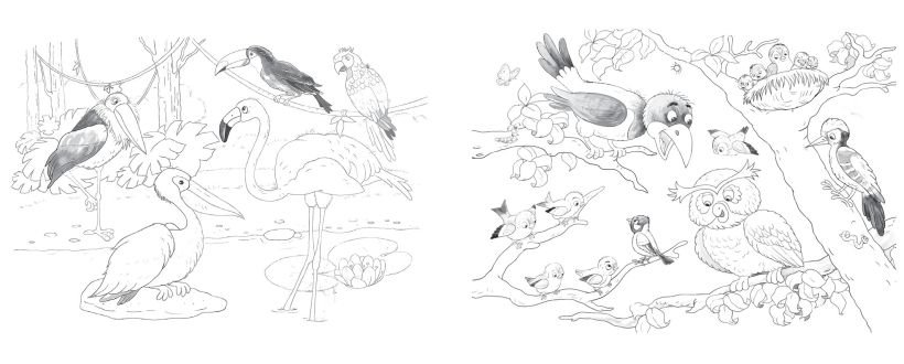 Раскрашивать водой легко: возьмите кисточку, смочите водой и проведите ею по чёрно-белым страницам! Перед вами как по волшебству оживут яркие картинки с разными животными. Когда страницы высохнут, их можно раскрашивать снова!