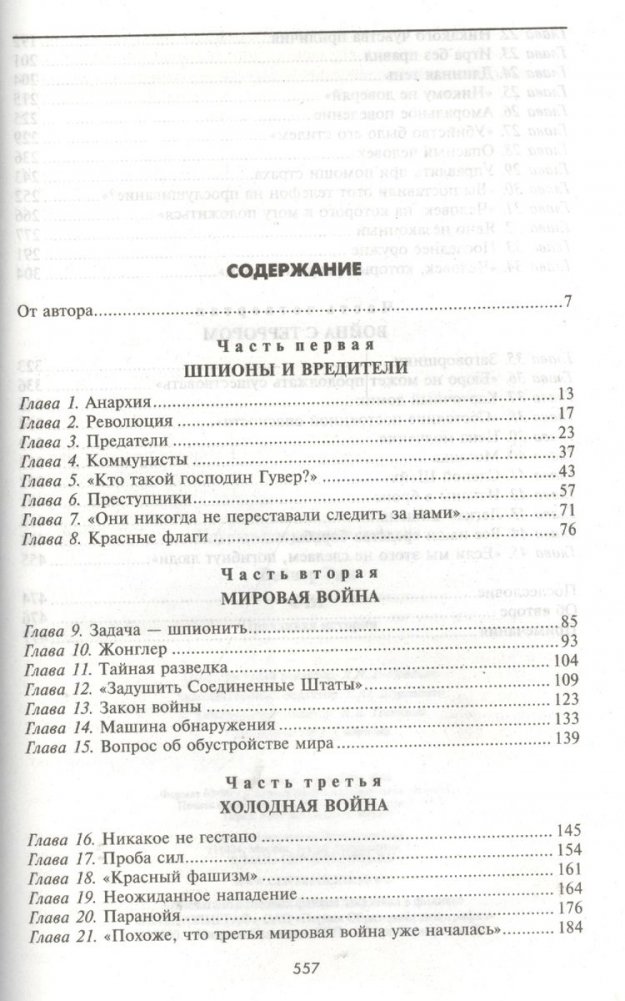 Провокационная, чрезвычайно интересная, скрупулезно выверенная книга лауреата Пулитцеровской премии Тима Вейнера посвящена вековой истории ФБР и может по праву считаться исчерпывающей энциклопедией деятельности этой тайной разведывательной службы США. Опираясь на рассекреченные в последние годы досье, автор представляет в истинном свете отца-основателя ФБР Дж. Эдгара Гувера. Рассказывает, как создавалась и совершенствовалась агентурная сеть. Как Гувер выполнял почти немыслимые задания: осуществлял слежку за руководителями Советского Союза и Китая в самый мрачный период холодной войны, контролировал государственные перевороты против демократически избранных лидеров иностранных государств, искусно дестабилизировал положение президентов Соединенных Штатов. Как вел политическую войну и управлял государственными делами в целях национальной безопасности, зачастую действуя в ущерб морали. Подвергая анализу усилия руководителей ФБР в войне с террористами, шпионами, анархистами и наемными убийцами, Тим Вейнер поднимает важный нравственный вопрос о том, готово ли общество отказаться от гарантий свободы, допустить незаконное проникновение агентов спецслужб в личную жизнь граждан ради обещаний безопасности.
