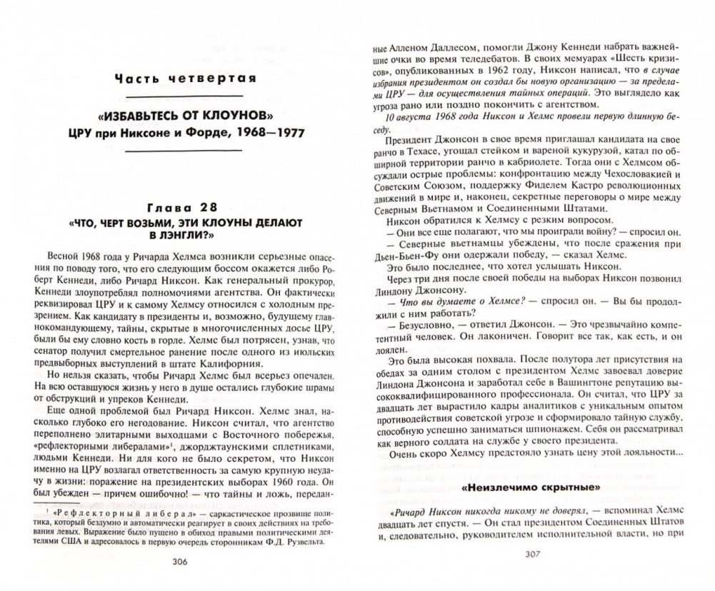 Провокационная, весьма поучительная и чрезвычайно интересная книга лауреата Пулитцеровской премии Тима Вейнера посвящена 60-летней истории ЦРУ. В основу исследования легли тысячи архивных документов, интервью с действующими агентами, ветеранами и бывшими руководителями главного американского шпионского ведомства. Автор без прикрас описывает военные операции ЦРУ на Кубе, во Вьетнаме, Афганистане, Ираке и множестве других стран, раскрывает тайные стороны отношений двух великих держав — СССР и США — в период холодной войны. Повествует об ошибках управления внутри ведомства, бездумном распылении колоссального бюджета и о том, как просчеты ЦРУ повлияли на состояние национальной безопасности США, следствием которых стала трагедия 11 сентября 2001 года. Предупреждает об опасной неспособности видеть мир таким, какой он есть, что недопустимо при угрозе мирового терроризма.