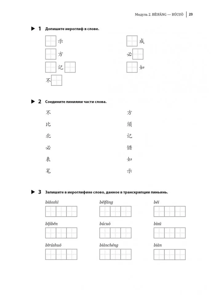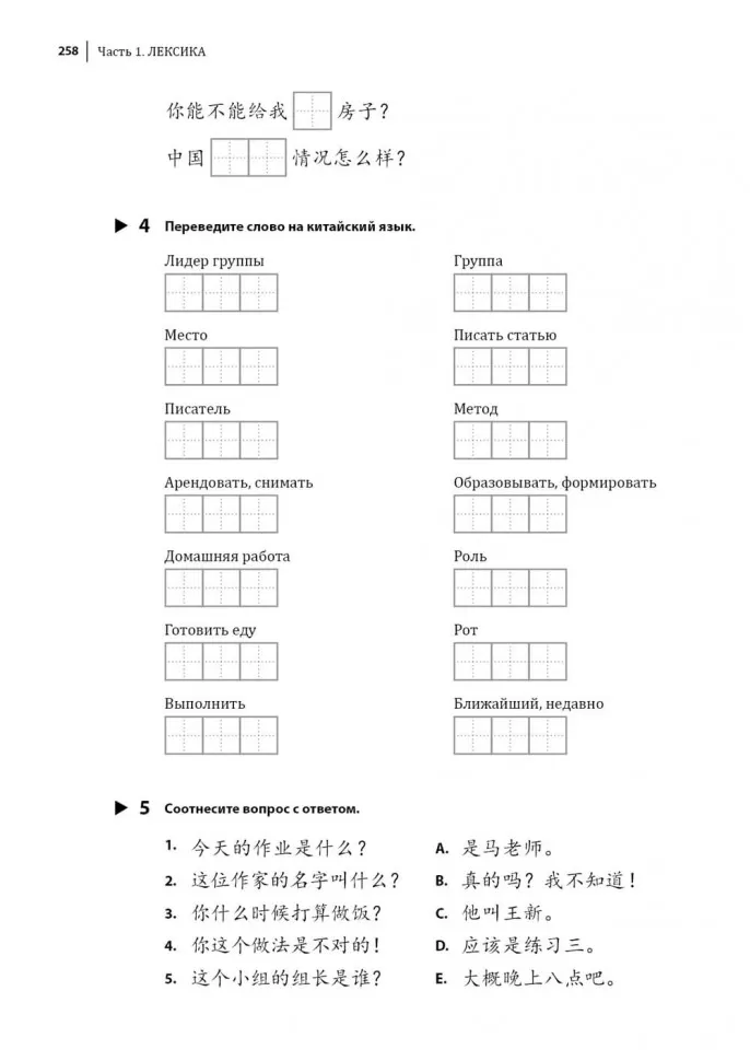 Книга состоит из трех частей. В первой приводится обновленный словарный минимум уровня. В новом стандарте это 1272 слова, а не 300, как раньше (из них 500 слов из уровня HSK 1). Закрепить лексический минимум помогут задания.