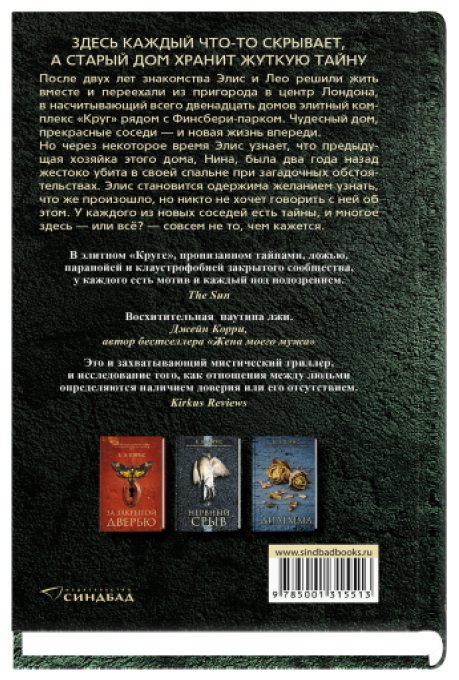 Пережив в прошлом трагедию, тридцатипятилетняя Элис уже не надеется обрести счастье. Но встретив Лео, понимает, что судьба улыбнулась ей, и вскоре они, полные надежд на новую, счастливую жизнь, вселяются в отремонтированный старый дом в небольшом элитном комплексе «Круг» в центральном районе Лондона.