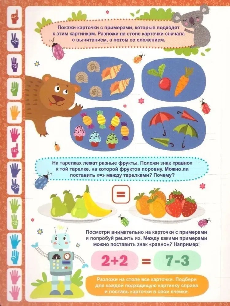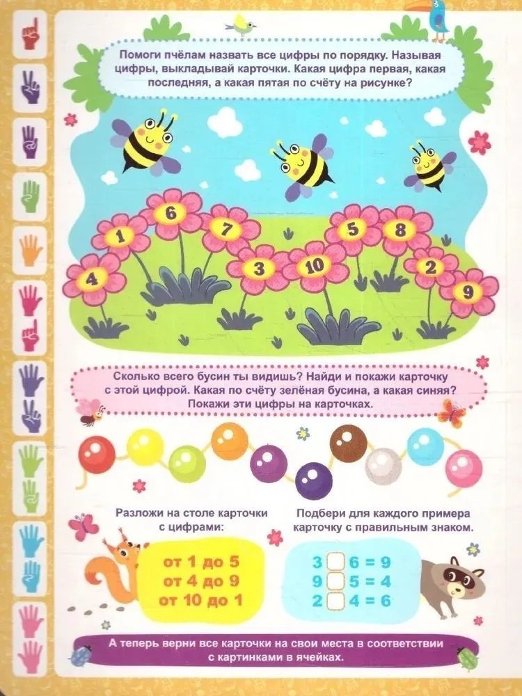 Книга-лото "Учимся считать"- это развивающее пособие для детей, которое разработано по методике Виктории Белых - педагога-психолога с 25-летним стажем работы с детьми. Занятия по этому пособию гарантируют максимальный прогресс в развитии вашего малыша.В книге 8 страниц с увлекательными заданиями и 48 плотных съёмных карточек с удобным отверстием для детских пальчиков.Под каждой карточкой спрятана картинка, которая играет ключевую роль в выполнении заданий. С помощью книги "Учимся считать" ребёнок познакомится с цифрами и освоит навыки счёта.Страницы толщиной в 2 мм выполнены из многослойного ламинированного картона, что позволит детально изучать и повторять материал огромное количество раз без ущерба для качества книги.Совет родителям: перед первым использованием достаньте все карточки и удалите защитные клапаны.