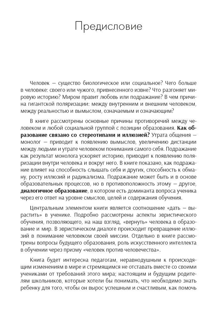 В книге рассмотрены основные аспекты подхода к образованию, при котором упор делается на вопрос, а не на ответ учащегося. Данный подход составляет основу эвристического обучения, ориентированного на индивидуализацию образования, развитие у ученика интереса к познанию себя и окружающего мира. Авторы предлагают оригинальный взгляд на происходящий в школах процесс «дать — вырастить» и при этом оставляют читателю право выбора скоростей или ценностей, создают пространство для нахождения своих ответов и смыслов.