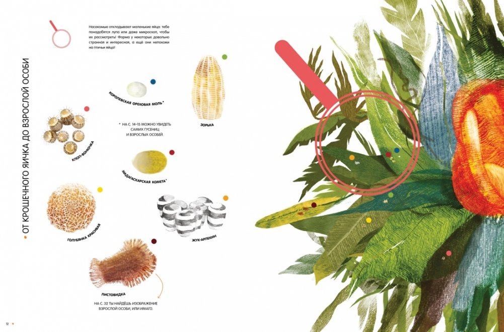 Кто крупнее – жук-геркулес или рогач-жираф? Почему богомола так назвали? Где живёт большая гарпия? На страницах этой книги ты можешь увидеть удивительных насекомых нашей планеты – мадагаскарскую комету, королевскую ореховую моль, жука-голиафа, белостому, рассмотреть жало бумажной осы, заднее крыло перуанского кузнечика, пчелиные соты. Большинство рисунков выполнено в натуральную величину! Книга содержит много интересной информации об ареале обитания насекомых, их размерах, особенностях, а также о способах маскировки от хищников. Рассмотри насекомых поближе и прочти факты о них: тебе откроется много секретов природного мира!