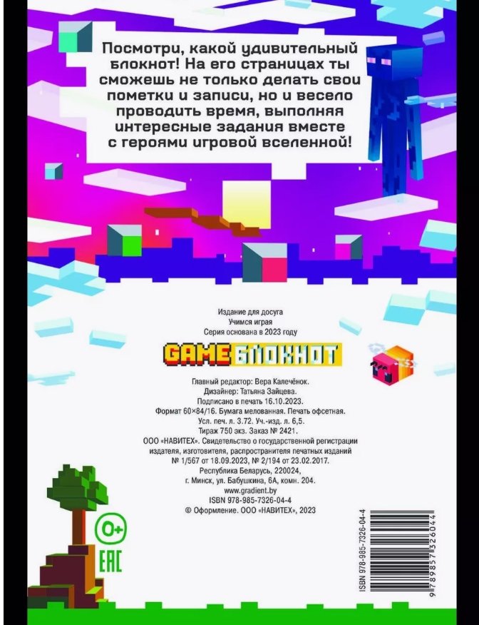 Представляем вашему вниманию необычный блокнот. На его страницах можно делать не только пометки и записи, но и весело проводить время, выполняя интересные задания в игровой форме вместе с героями всемирно известной компьютерной игры. 64 страницы игр, головоломок, творческих челленджей для настоящих геймеров!