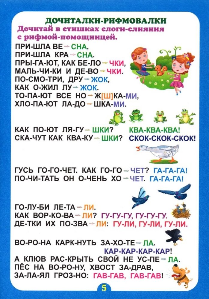Ребёнок с большим интересом и удовольствием будет складывать слоги, находить заданные буквы и слоги в словах, составлять слоги из пазлов, дочитывать слоги с помощью слов-слияний – рифм-"помощниц" и разделённых на слоги несложных занимательных стишков. Он сможет удобно для себя, без трудностей и переживаний, в своём темпе и объёме поступенно тренироваться в чтении, одновременно развивать мышление, логику, речь, внимание, память, обогащать интеллектуальный потенциал. Ребёнку, научившемуся складывать слоги, слоги в слова, а слова в предложения, необходимо совершенствовать навык чтения путём систематических тренировок. Именно на многоразовое и последовательное обращение ребёнка к текстам нацелена книжка-тренажёр при безусловной помощи и заинтересованности в занятиях чтением близких малышу взрослых.