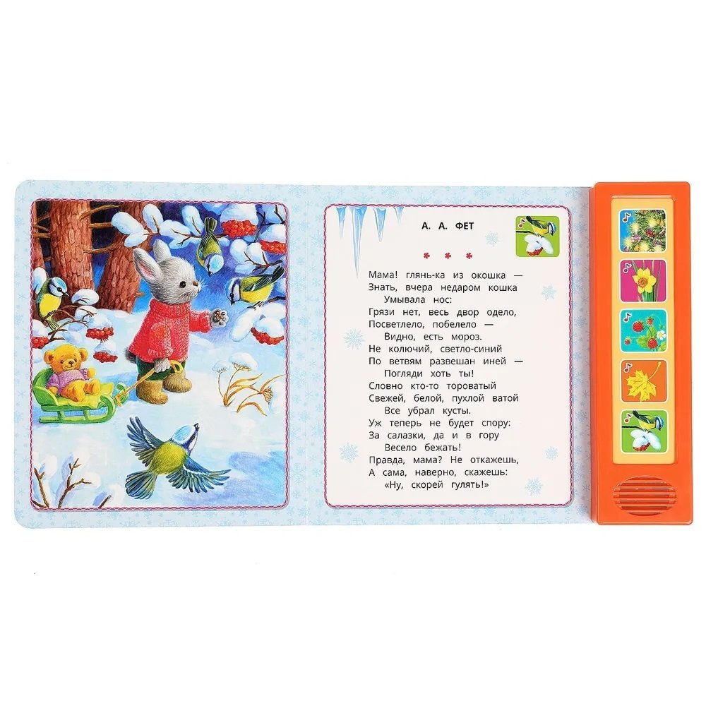 Рядом с этими волшебными кнопками расцветают стихи русских классиков, созданные специально для каждого времени года. Эти творения мастерски переносят детей в атмосферу каждого сезона, зафиксировав его уникальные черты и настроение.