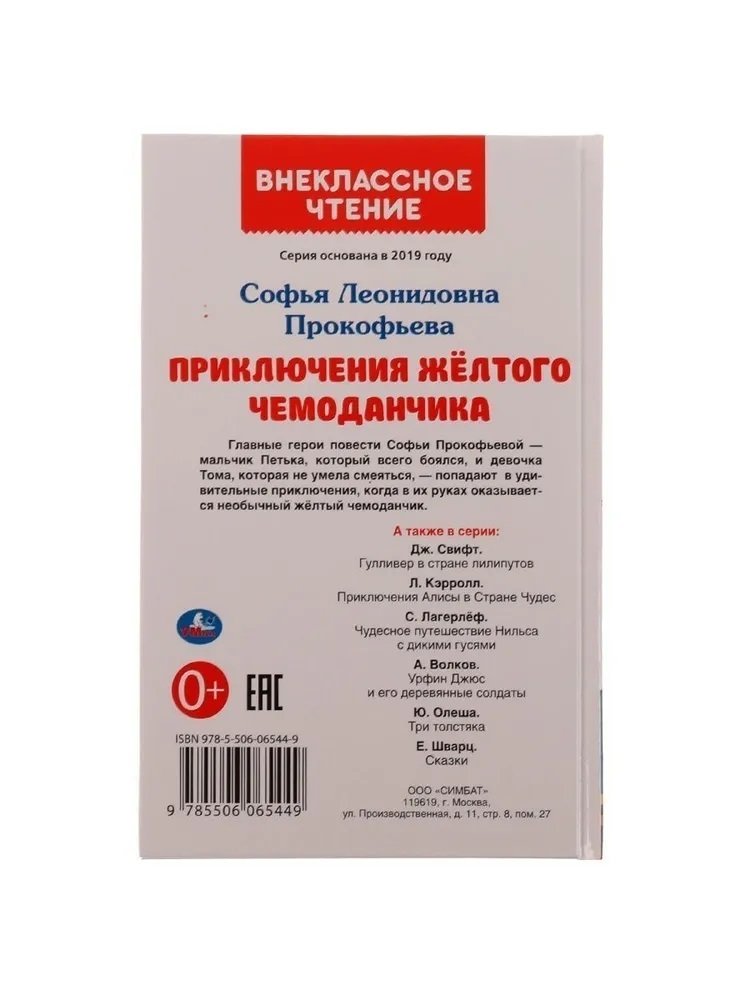 Приключения жёлтого чемоданчика. Прокофьева С. Л. Внеклассное чтение.125х195. Книга «С. Л. Прокофьева. Приключения жёлтого чемоданчика» из серии «Внеклассное чтение» - отличный вариант для самостоятельного чтения вне занятий в школе:- произведение напечатано без сокращений- яркие крупные картинки- крупный шрифт- твёрдый переплёт- удобный формат- соответствует ФГОСПовесть-сказка Софьи Прокофьевой о Детском Докторе и его волшебном жёлтом чемоданчике, где найдётся чудесное лекарство от трусости, болтливости, печали и прочих подобных «недугов», непременно увлечёт юного читателя. Произведение рекомендовано ФГОСом и различными образовательными программами детям младшего школьного возраста для внеклассного чтения. Благодаря компактному размеру книгу удобно брать с собой в дорогу.Чтение книг из серии «Внеклассное чтение» расширяет кругозор и развивает:- образное мышление- визуальное восприятие- внимание- память- речьОбъём: 128 стр. Формат: 125 х 195 мм (А5).Материал: офсетная бумага.Рекомендовано детям младшего школьного возраста.