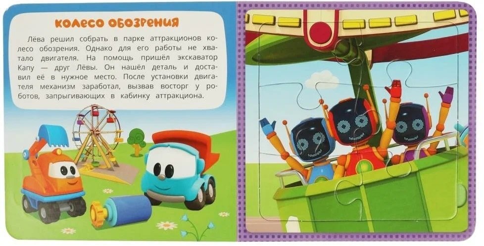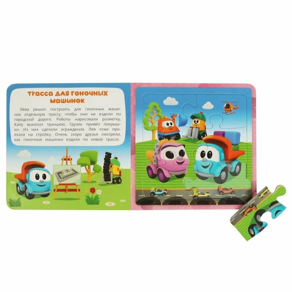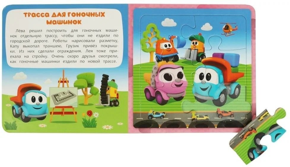 Данная книга выполняет сразу 2 функции: это и книга для чтения, и игра в пазлы. На каждом развороте малыша ждёт интересное повествование, а также яркий пазл с изображением героев любимого мультсериала. Книжка изготовлена из плотного картона, поэтому мамы могут не опасаться, что ребёнок порвёт странички. Благодаря удобному формату книгу можно взять с собой в дорогу.