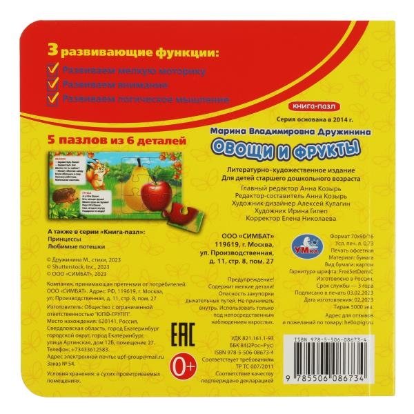 Книга-пазл «М. Дружинина. Овощи и фрукты» ТМ «УМка» станет прекрасным подарком для ребёнка: