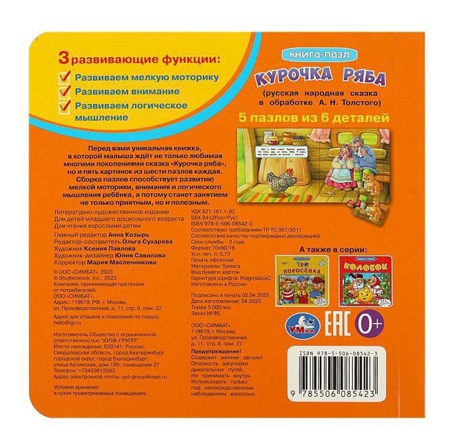 Курочка Ряба. Книга с 5 пазлами