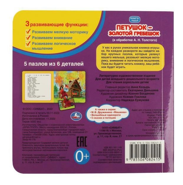 Книга с 5 пазлами «Петушок - золотой гребешок» ТМ «УМка» станет прекрасным подарком для ребёнка: