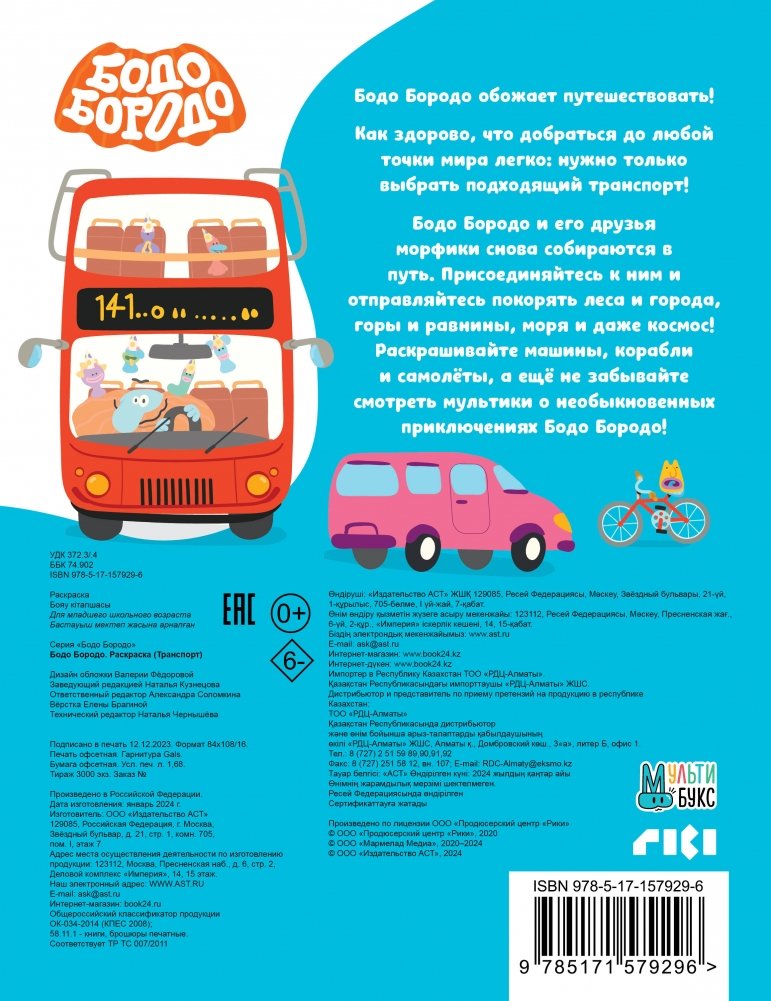 Раскрашивайте машины, корабли и самолёты, а ещё не забывайте смотреть мультики о необыкновенных приключениях Бодо Бородо!