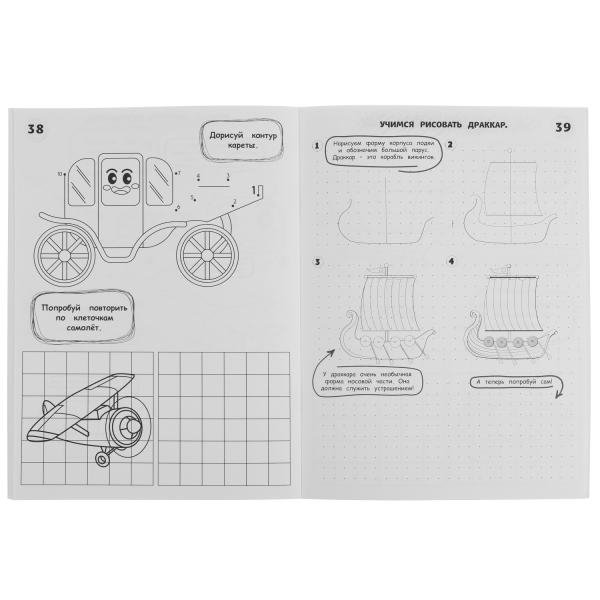 С этой книжкой научиться рисовать очень просто! Несколько простых схем и советов помогут не только быстрее освоить навык, но и понять строение рисунка. Помимо пошаговых инструкций, в раскраске собраны интересные задания, которые также направлены на обучение ребёнка рисованию.