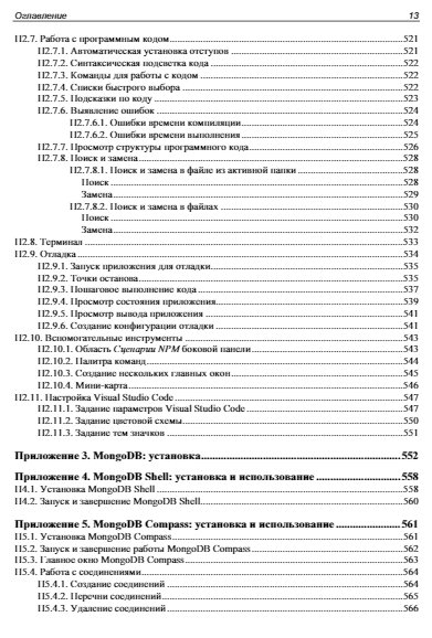 В книге 23 урока, более 40 практических упражнений и заданий для самостоятельной работы. Даны основы программирования на Node.js: проекты и манифесты, установка дополнительных библиотек, импорт и экспорт. Описан серверный веб-фреймворк Express: работа с запросами и ответами, маршрутизация, шаблонизатор EJS, обработка пользовательских данных, статических файлов, валидация, сохранение выгруженных файлов, вывод сообщений об ошибках и разграничение доступа. Показана работа с СУБД MongoDB: запись и выборка данных, фильтрация, сортировка, применение моделей Mongoose. Рассказано о двухзвенных веб-приложениях, бэкендах и фронтендах. Рассмотрено программирование бэкендов средствами Express и фронтендов с применением клиентского веб-фреймворка React. Затронуты вопросы повышения производительности и защищённости веб-приложений, ввод их в эксплуатацию. Электронный архив на сайте издательства содержит полный исходный код описанных в книге примеров.