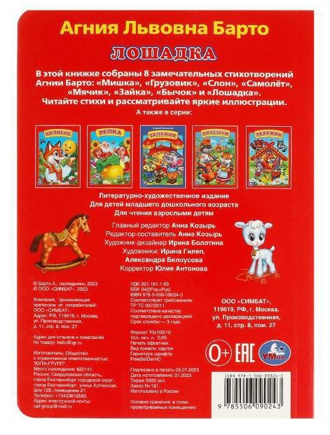 Картонная книга «А. Барто. Лошадка» ТМ «УМка» станет отличным подарком для ребёнка: