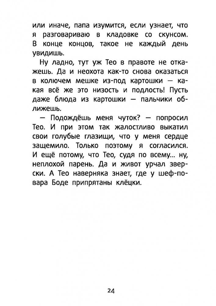 Есть детективы, а есть — супердетективы! Знакомьтесь: Флетчер — основатель дворового детективного агентства, благородный скунс, способный учуять преступника за версту. Его напарник Тео — сын шеф-повара «Дикого Лося». Героям предстоит расследовать первое совместное дело: найти и обезвредить того хитреца, что ужинает в ресторане и уходит не заплатив! Ведь из-за него на кону само существование «Дикого Лося», без фирменного блюда которого — клёцек — детектив и представить не может свою жизнь.