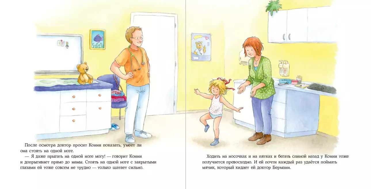 Вместе с Конни подготовьте ребенка к предстоящему мероприятию: прочитайте, как проходит осмотр у врача, что он проверяет и какие инструменты использует. Если все обсудить с малышом заранее, он наверняка не будет нервничать и пугаться в поликлинике и ежегодный осмотр пройдет спокойно.