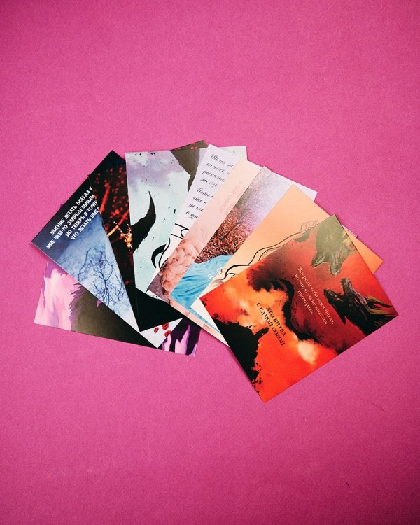 Каждая открытка сделана из плотного картона, оборот открыток максимально облегченный, чтобы вы могли написать на них все что захотите.