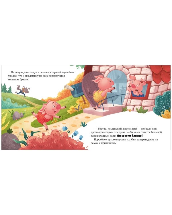 Однажды три поросёнка отправились в лес, чтобы построить собственные домики. Вскоре за ними погнался большой злой волк! Смогут ли поросята перехитрить его? Игры и задания в конце книги!