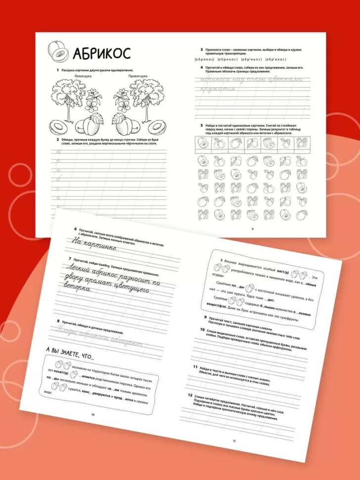При работе с тетрадью у детей обогащается словарный запас, развивается орфографическая зоркость, совершенствуется грамматический строй речи, улучшаются техническая и смысловая стороны чтения.