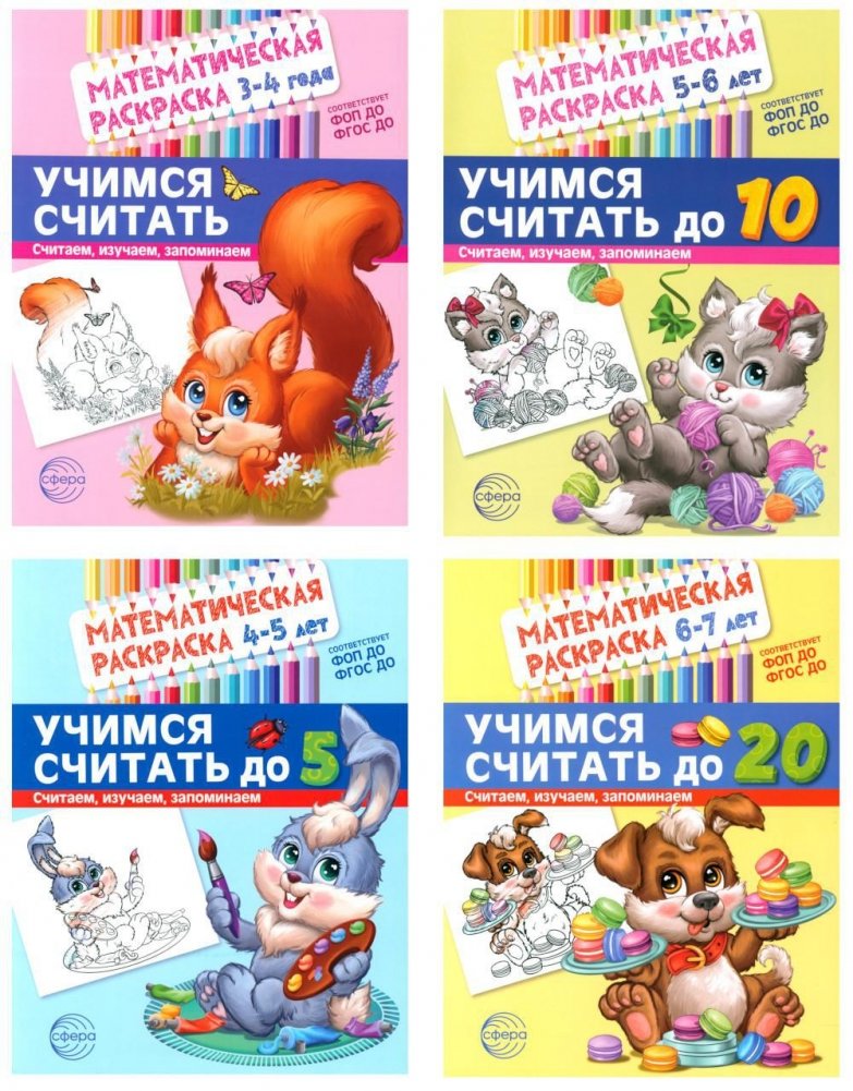 Математические раскраски. Учимся считать (комплект из 4-х книг)