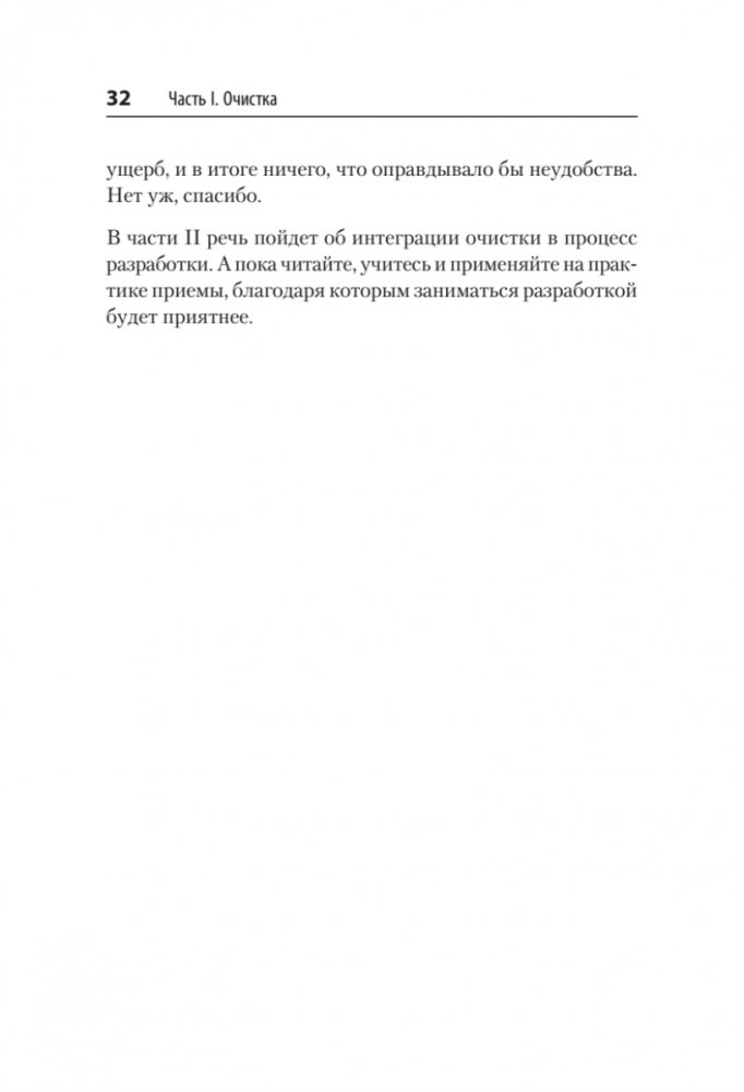 Книга не заставляет читателя проводить очистку сразу и целиком, а позволяет протестировать несколько примеров, которые подходят для поставленной задачи. Вы узнаете, как логически разделить на части большую функцию, содержащую множество строк кода. Познакомитесь с теоретическими понятиями программного дизайна: сцеплением, связностью, дисконтированными денежными потоками и вариативностью.